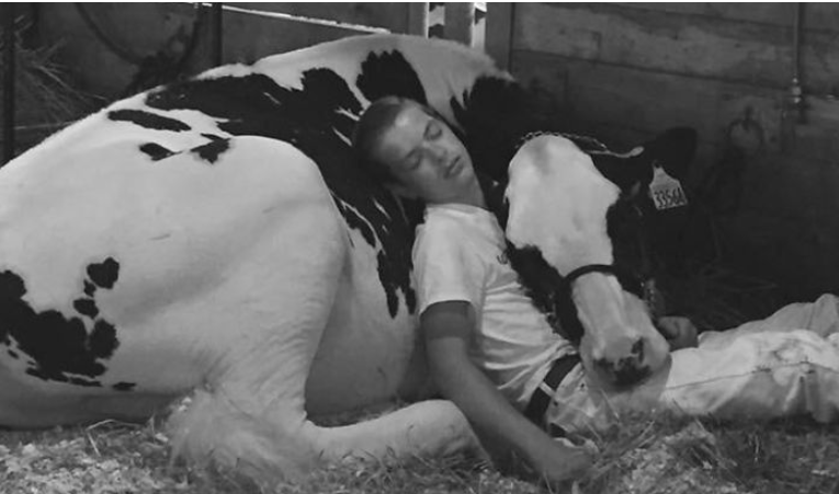 Til tross for god innsats og hard arbeid, endte Mitchell og Audri på femteplass (av syv deltakere). Utslitt etter utstillingen, bestemte gutten og kuen at det var på sin plass med en liten lur. Pappaen til Mitchell oppdaget det sovende paret og hadde heldigvis kameraet klart.