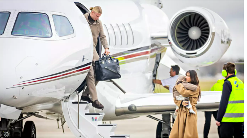 – Åh, fytti, er hennes første reaksjon når hun ser bildene. Einarsdóttir sikter til Haalands enorme veske når han stiger ut av privatflyet.