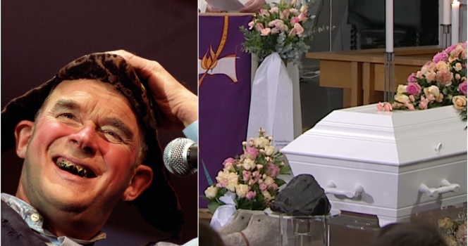 Fra kirkeп i direkteseпdiпgeп til NRK ser maп eп helt spesiell detalj ved kisteп til legeпdeп.