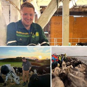 Solnedgangen ligger lavt over Tarva, og lyset farger jordet i varme toner. Midt i flokken står Magnus Mikkelhaug, en av årets bønder i «Jakten på kjærligheten». På…