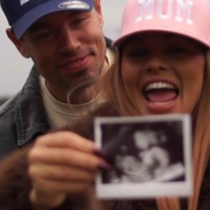 På lørdag delte Joner en video hvor paret holder rundt hverandre mens de viser frem et ultralydbilde. – Baby loading … 50 %, skriver hun til videoen…