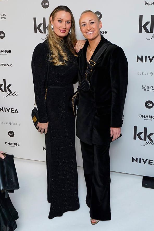 Camilla Herrem (t.h.) sammen med søsteren ankommer KK-gallaen for «Årets kvinner 2025» på Grand Hotel i Oslo. Foto: Thomas Fure / NTB