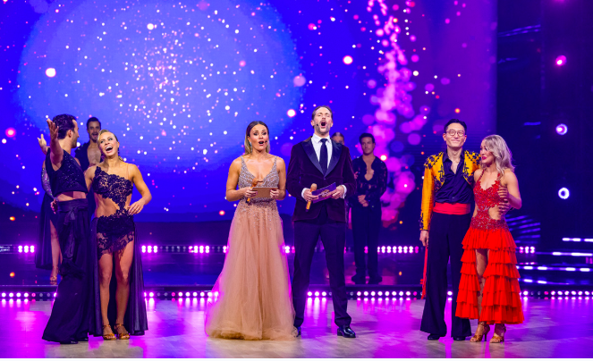 Danby Choi og Norunn Ringvoll er stemt ut og Tiril Eckhoff og Santino Mirenna er klar for finale under program 11 av Skal vi danse 2025. Foto: Thomas Andersen / TV 2