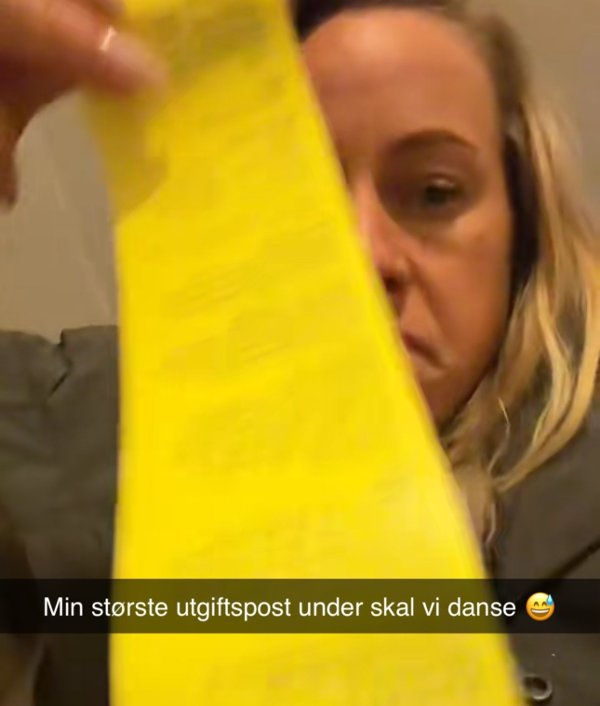 – Min største utgiftspost under «Skal vi danse», skrev hun på Snapchat da hun viste frem en av bøtene.