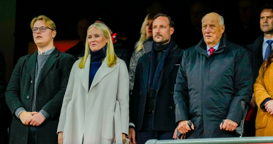 Den gang var både kongen, kronprinsparet og barna prinsesse Ingrid Alexandra (21), prins Sverre Magnus og Marius Borg Høiby (28) på plass under kampen mellom Norge og Ungarn.