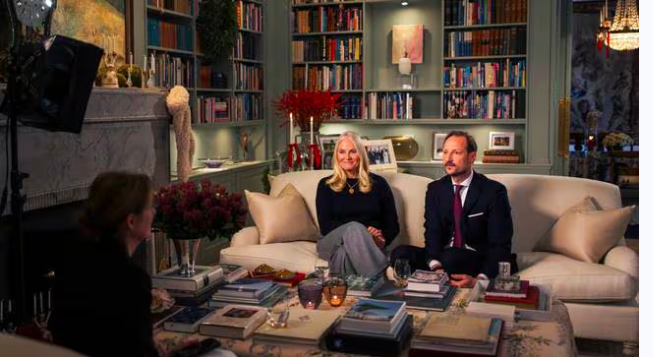 Kronprins Haakon og kronprinsesse Mette-Marit tar imot NRKs «Året med kongefamilien» hjemme på Skaugum.