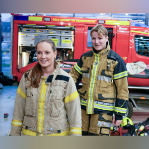 På brannstasjonen fikk søskenparet en grundig omvisning og tilbrakte lunsjen sammen med mannskapet.