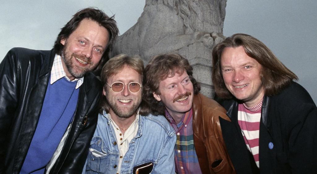 SUKSESS: Jan Eggum (t.h.) var en del av de populære Gitarkameratene på 1990-tallet. Her med (f.v.) Lillebjørn Nilsen, Halvdan Sivertsen og Øystein Sunde. Foto: Jørn H. Moen