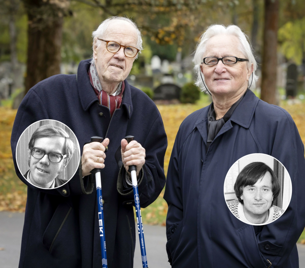 LEGENDER: Henry Notaker (t.v.) og Joar Hoel Larsen satte stor pris på å få jobbe med Jarl Munch i NRKs nyhetsredaksjon. – Han var en veldig fin og kunnskapsrik kollega, sier de. Yngre år: Henry Notaker i 1974 – 33 år gammel. Joar Hoel Larsen i 1983 – 33 år gammel. Foto: Tore Skaar / Se og Hør