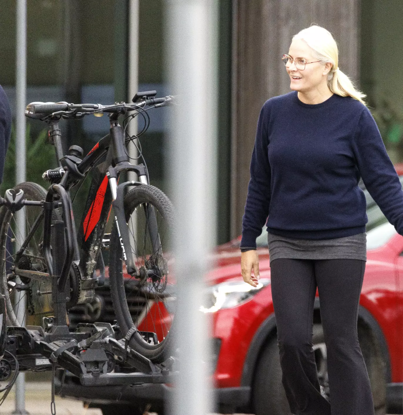 AKTIV BEHANDLING: En del av rehabiliteringen er fysisk aktivitet, og det ser ut til at kronprinsessen hadde med seg sykkelen sin på sykehuset – festet til et sykkelstativ på bilen hennes. Foto: Tor Lindseth