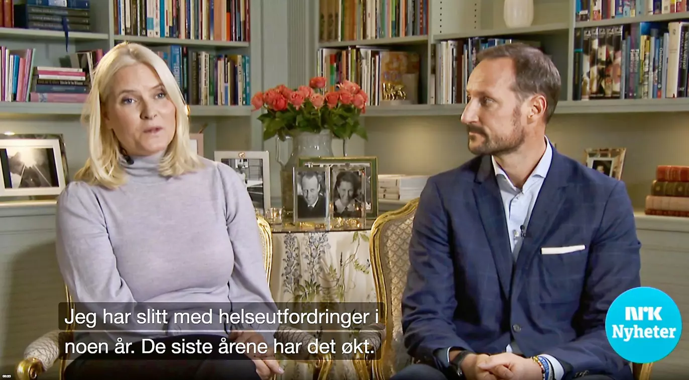 SAMMEN OM ALT: Da kronprinsessen første gang fortalte om sykdommen sin i 2018 i et intervju med NRK, satte kronprinsen trygt ved hennes side. Foto: NRK