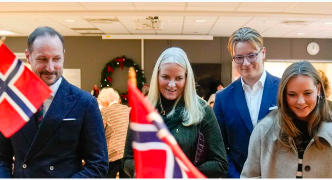 Så viste kronprinsesse Mette-Marit stolt frem sine barn til beboerne.