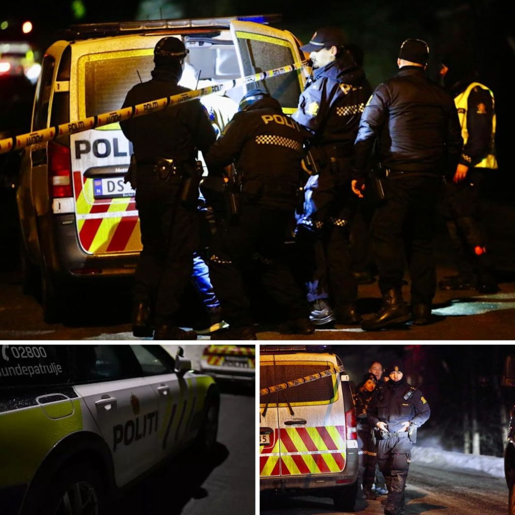 Fotograf på stedet melder om massivt politioppbud – med 10-12 politibilder og kriminalteknikere.