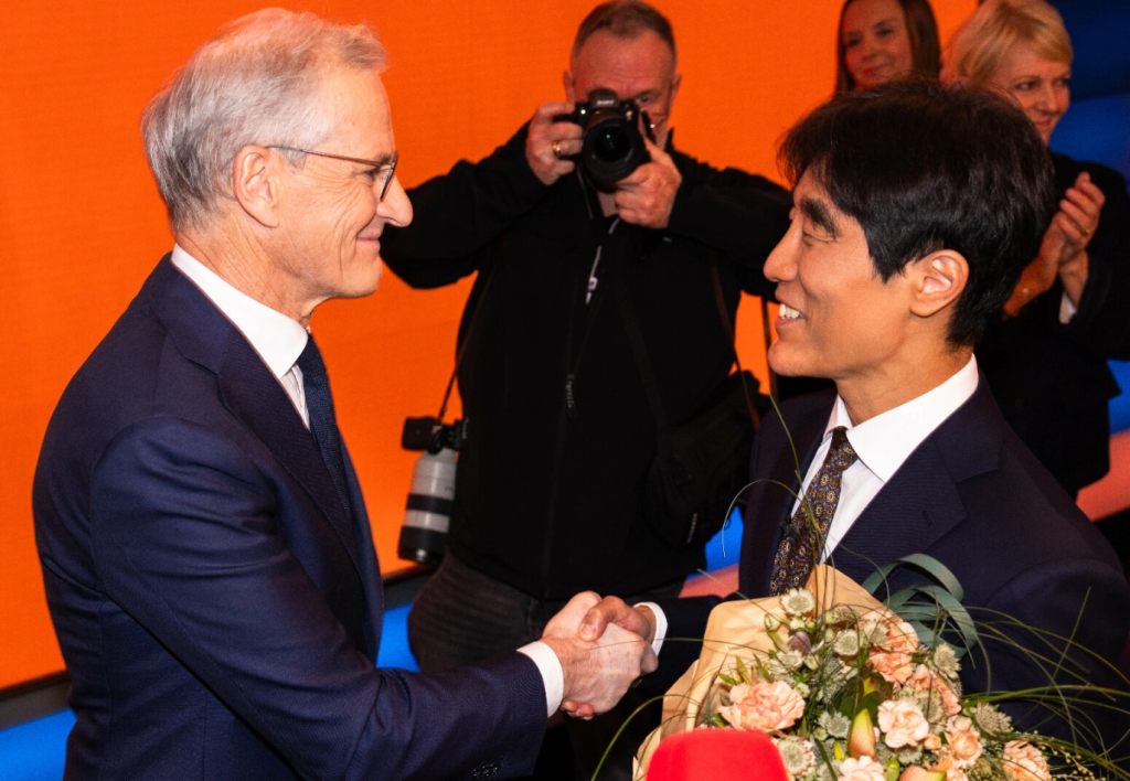 RØRT: Både politikere og kolleger sto i kø med sine ovasjoner for jobben Fredrik har utført som programleder. Nær 500 sendinger har han unnagjort! – Akkurat nå føler jeg meg overvelda, sa Fredrik, mens kolleger og toppolitikere æret ham.