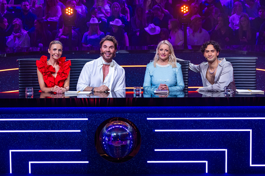 Cengiz Al, Merete Mørk Lingjærde, Jan Thomas og Nadya Khamitskaya under program 5 av Skal vi danse 2025. Foto: Thomas Andersen / TV 2