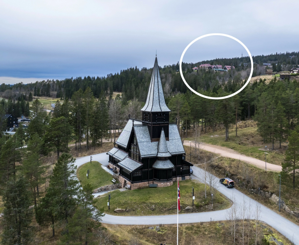 OVER OSLO: Holmenkollen kapell ligger vakkert til. Noen hundre meter bak kirken har Stein Erik sitt staselige hjem – Voksenhus. Foto: Shad