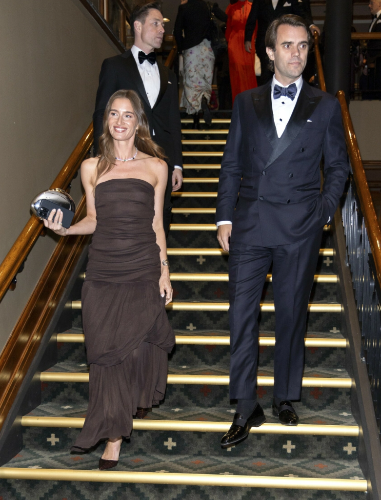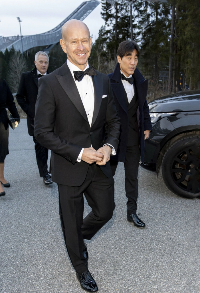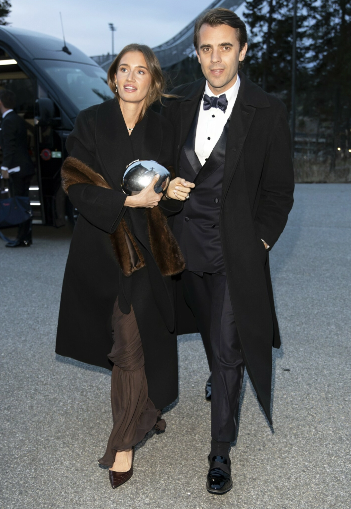 ELEGANTE: Carl Erik Hagen (39) er Stein Eriks eldste sønn – og var selvsagt på plass med sin Rikke Sandvold (27). I bakgrunnen skimter vi hoppbakken i Holmenkollen. Foto: Andreas
