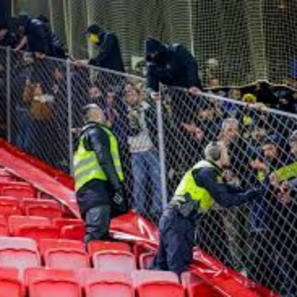 Etter kampen brøt det ut stygge scener på tribunen der tyrkiske fans tok seg over gjerdet som separerte de to lagenes supportere og inn på et området der hjemmefansen holdt til.