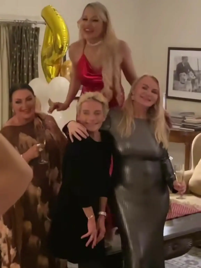 Rundt henne sto Mia Gundersen, Anette Bøe og Lilli Bendriss – alle klare til å feire jubilanten med sang, mat og champagne. Videoer viste en kveld full av dans, latter og jubel.